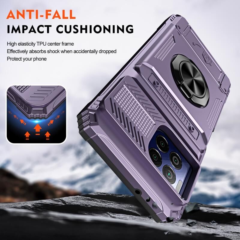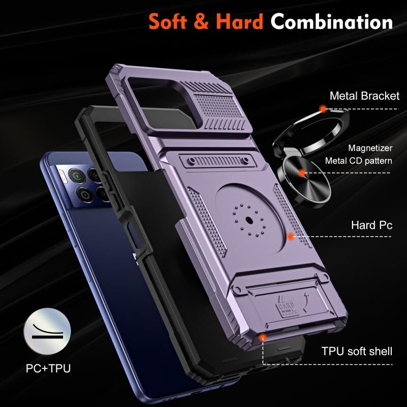 Για T-Mobile REVVL 7 Pro TPU Hybrid PC Shockproof κάρτα τηλέφωνο υπόθεση με μεταλλικό δαχτυλίδι κάτοχος (μωβ)