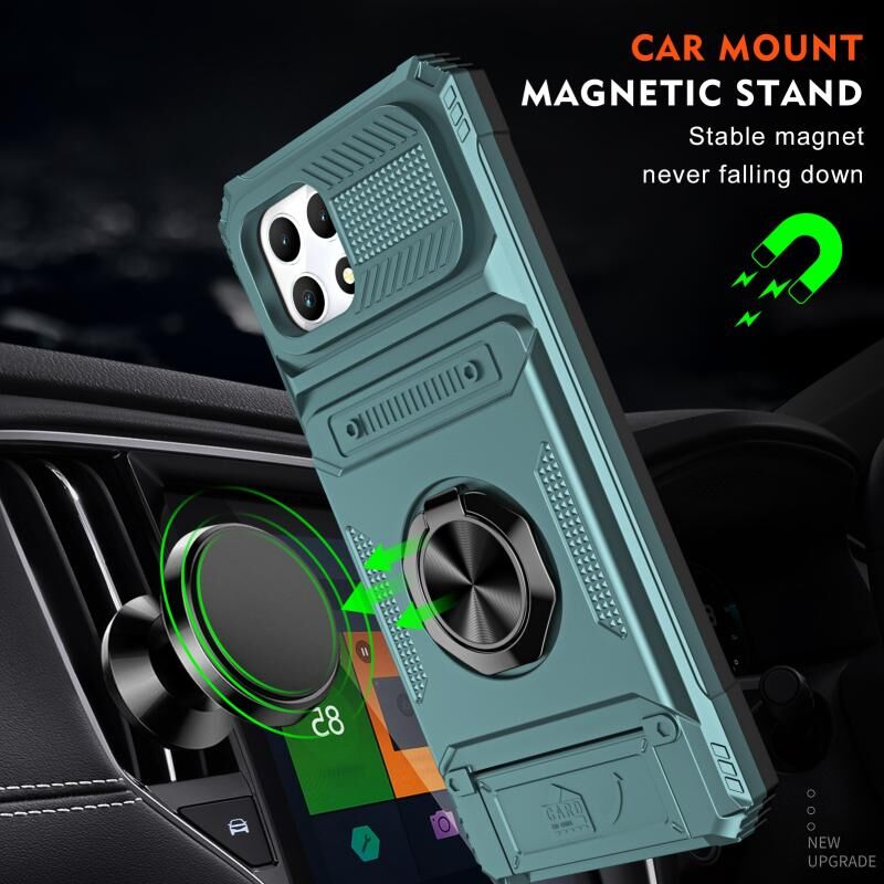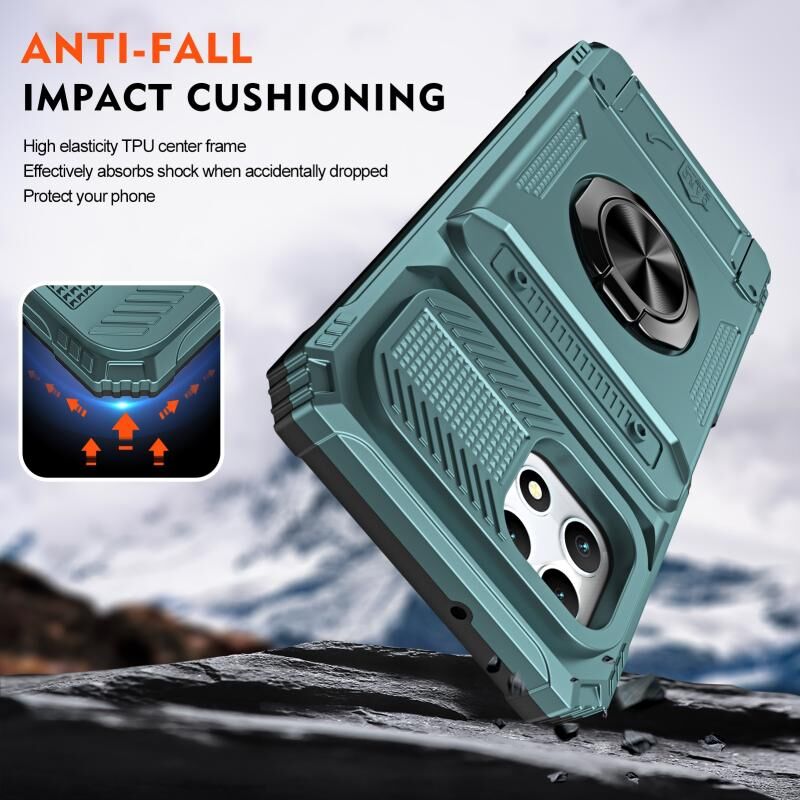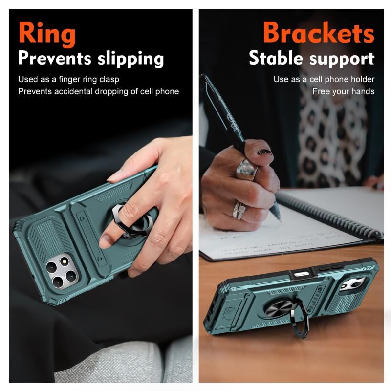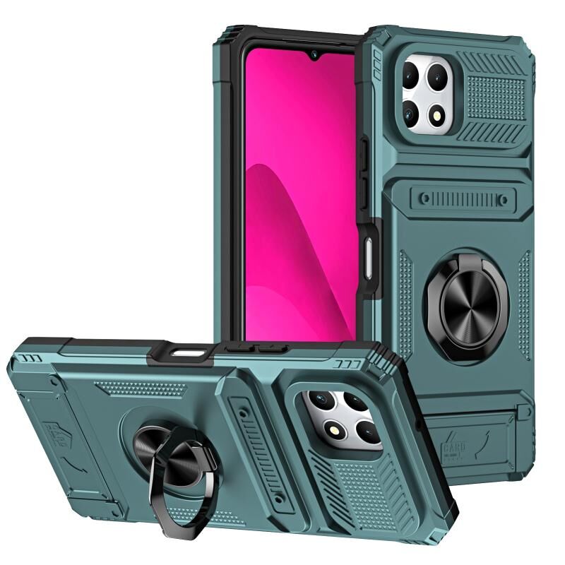 Για T-Mobile REVVL 7 TPU υβριδικό PC Shockproof κάρτα τηλέφωνο υπόθεση με μεταλλικό δαχτυλίδι κάτοχος (πράσινο)
