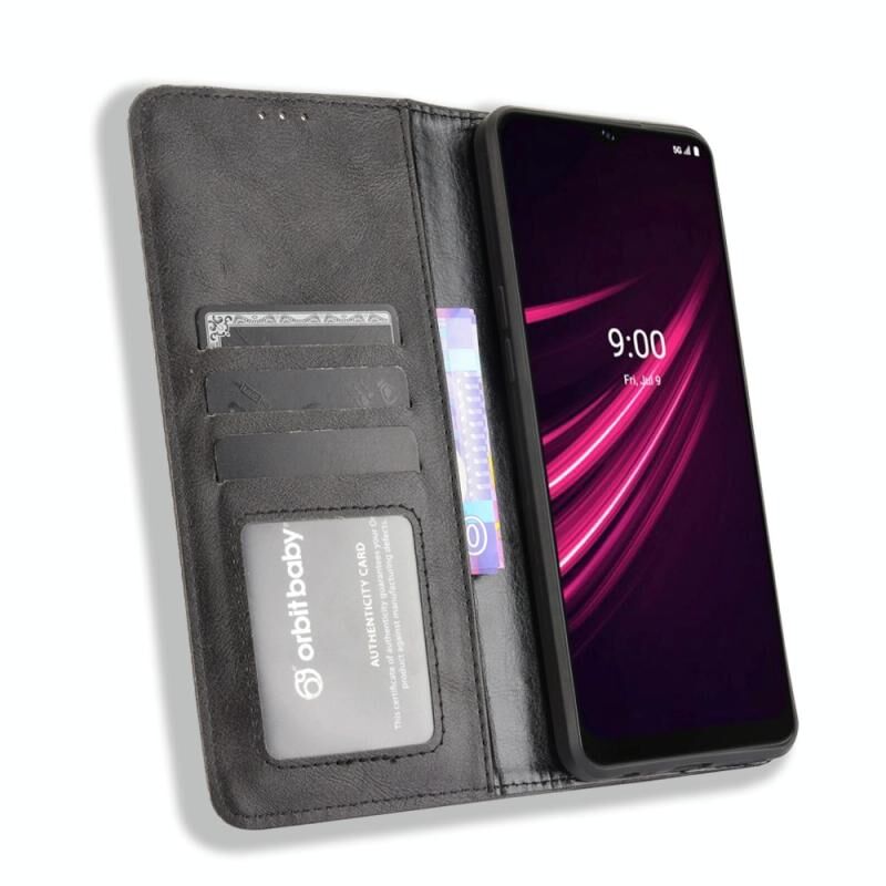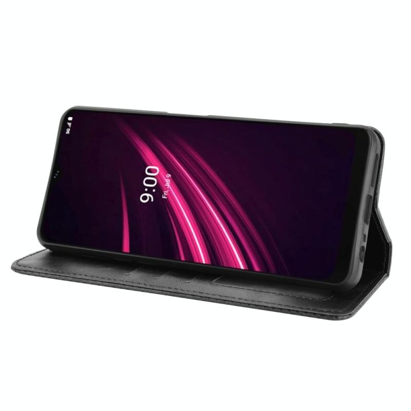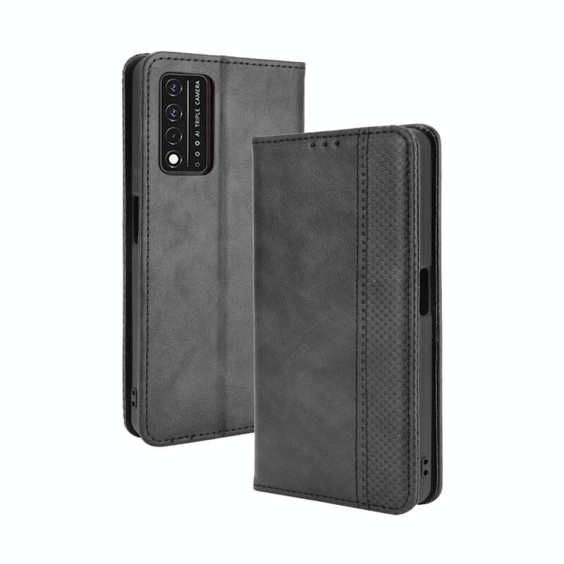 Για T-Mobile REVVL V+ 5G Μαγνητική πόρπη Ρετρό Crazy Horse Υφή Οριζόντια Flip δερμάτινη θήκη με υποδοχή & υποδοχές καρτών & πλαίσιο φωτογραφιών (Μαύρο)