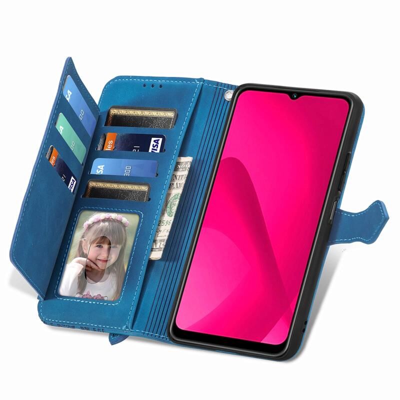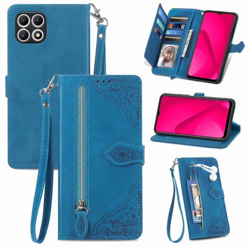 Για T-Mobile T Phone 2 5G ανάγλυφο λουλούδι φερμουάρ δερμάτινη θήκη τηλεφώνου (μπλε)
