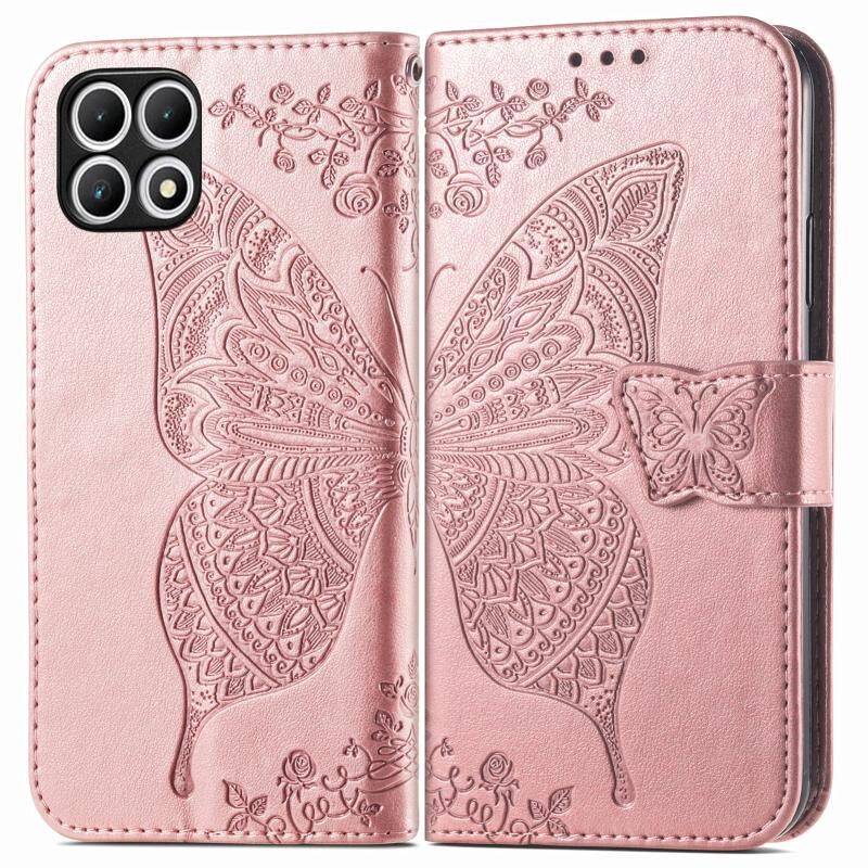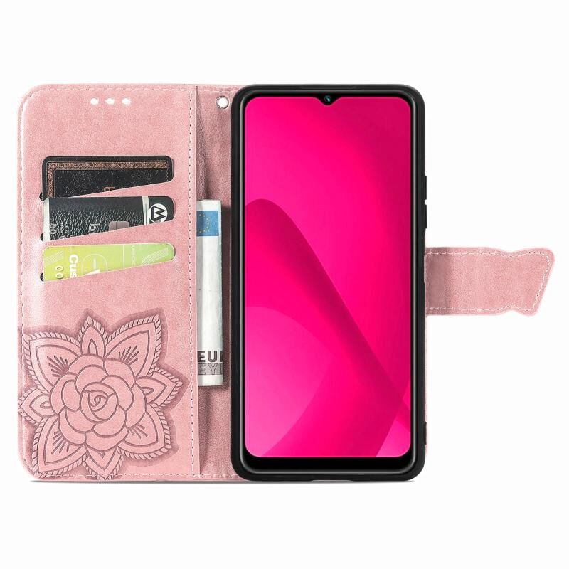 Θήκη τηλεφώνου από δέρμα με ανάγλυφο σχέδιο πεταλούδας και λουλουδιών για T-Mobile T Phone 2 Pro 5G (Ροζ)