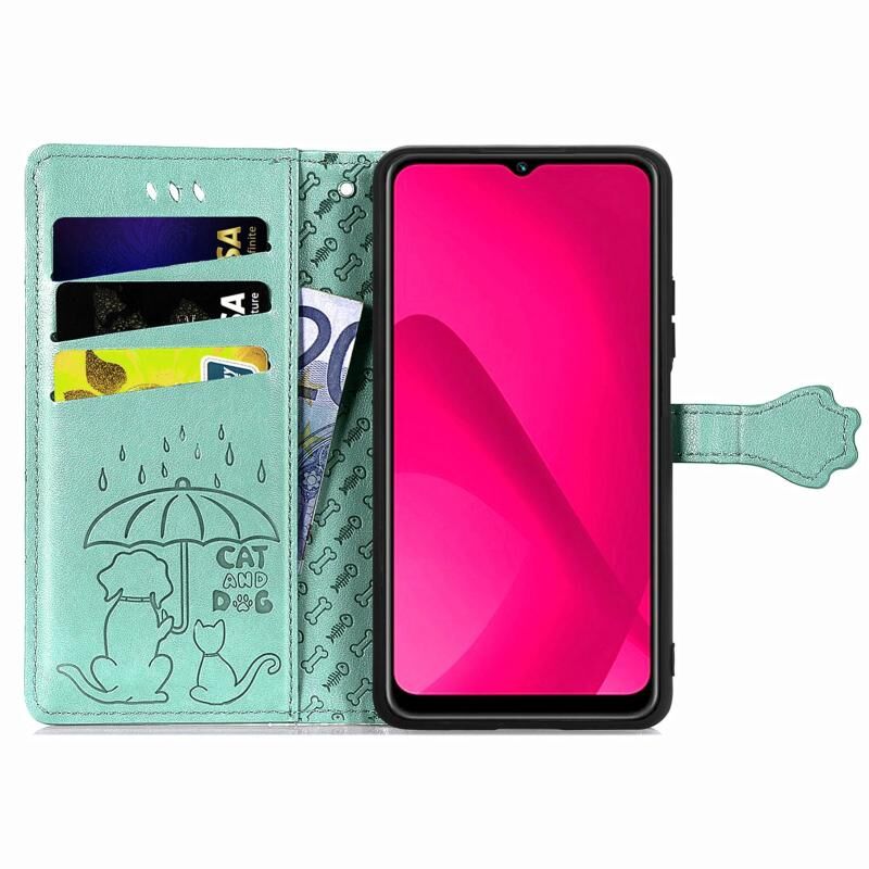 Θήκη τηλεφώνου από δέρμα με ανάγλυφο σχέδιο γάτας και σκύλου για T-Mobile T Phone 2 Pro 5G (πράσινο)