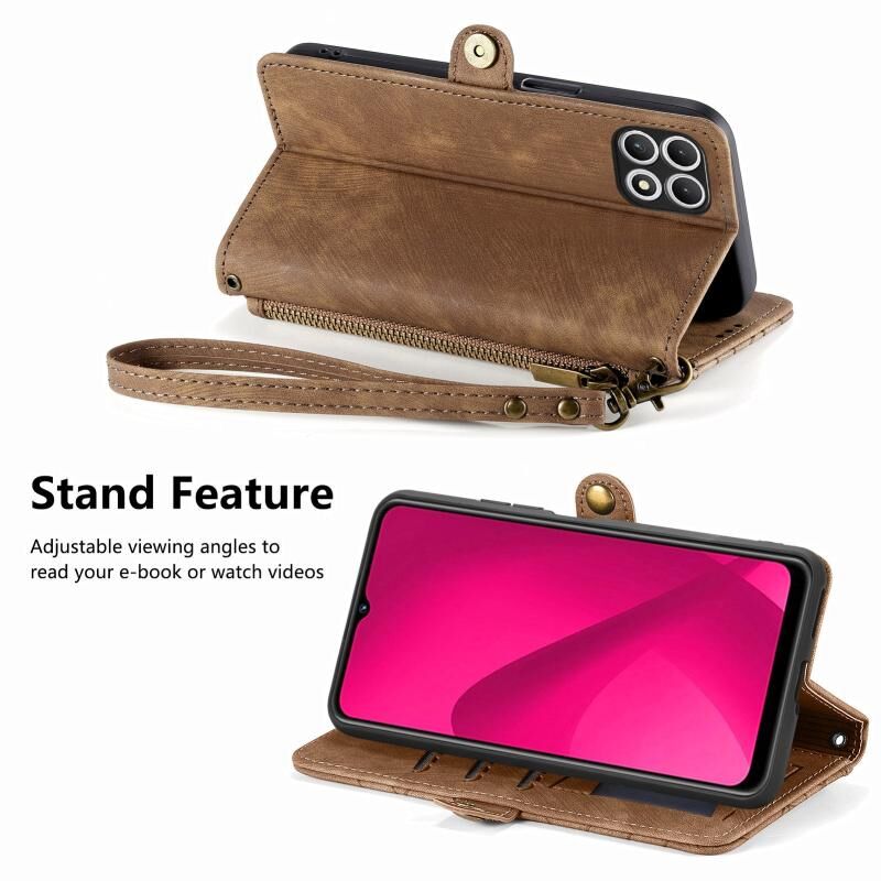 Για T-Mobile T Phone 2 Pro 5G γεωμετρική φερμουάρ πορτοφόλι πλευρά πόρπη δερμάτινη θήκη τηλεφώνου (καφέ)