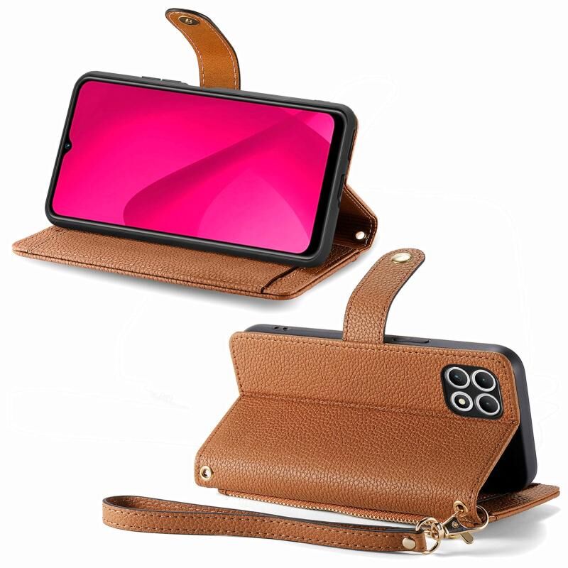 Για T-Mobile T Phone 2 Pro 5G αγάπη φερμουάρ Lanyard δέρμα τηλέφωνο υπόθεση (καφέ)