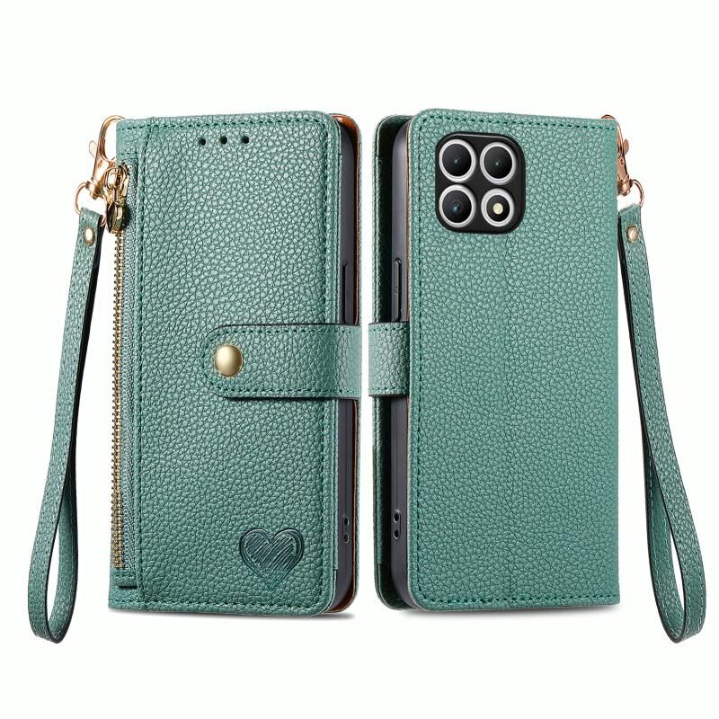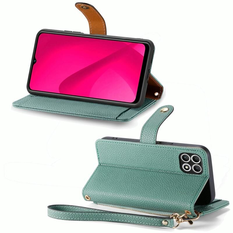 Για T-Mobile T Phone 2 Pro 5G αγάπη φερμουάρ Lanyard δέρμα τηλέφωνο υπόθεση (πράσινο)