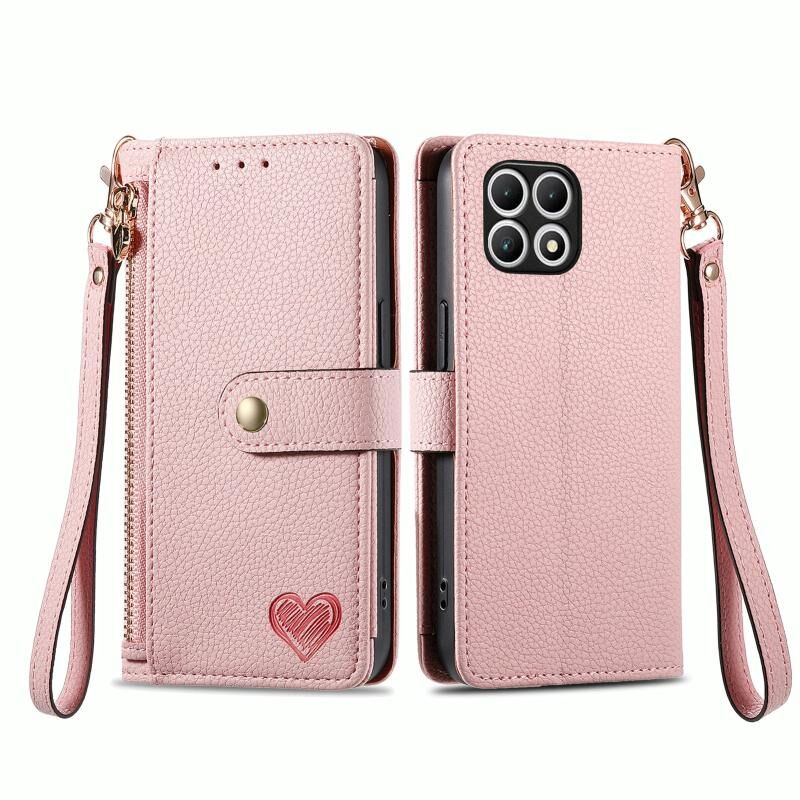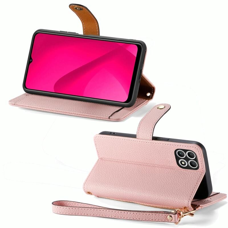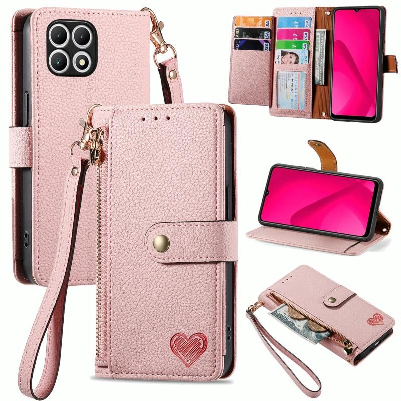 Για T-Mobile T Phone 2 Pro 5G αγάπη φερμουάρ Lanyard δερμάτινη θήκη τηλεφώνου (ροζ)