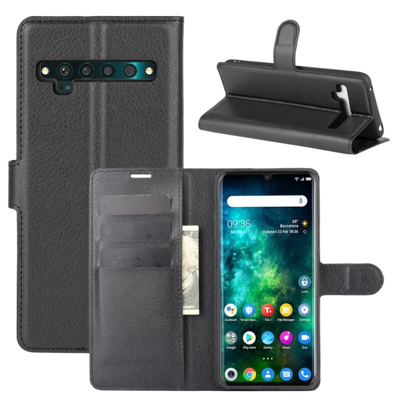 Για TCL 10 Pro Litchi Υφή Οριζόντια Flip Προστατευτική θήκη με κάτοχο & υποδοχές για κάρτες & πορτοφόλι (Μαύρο)