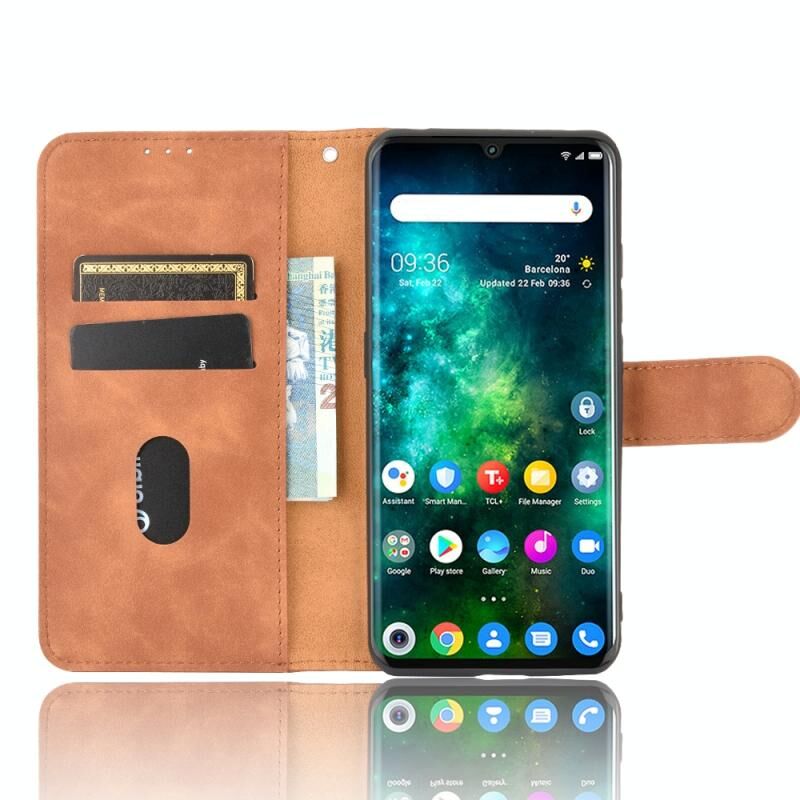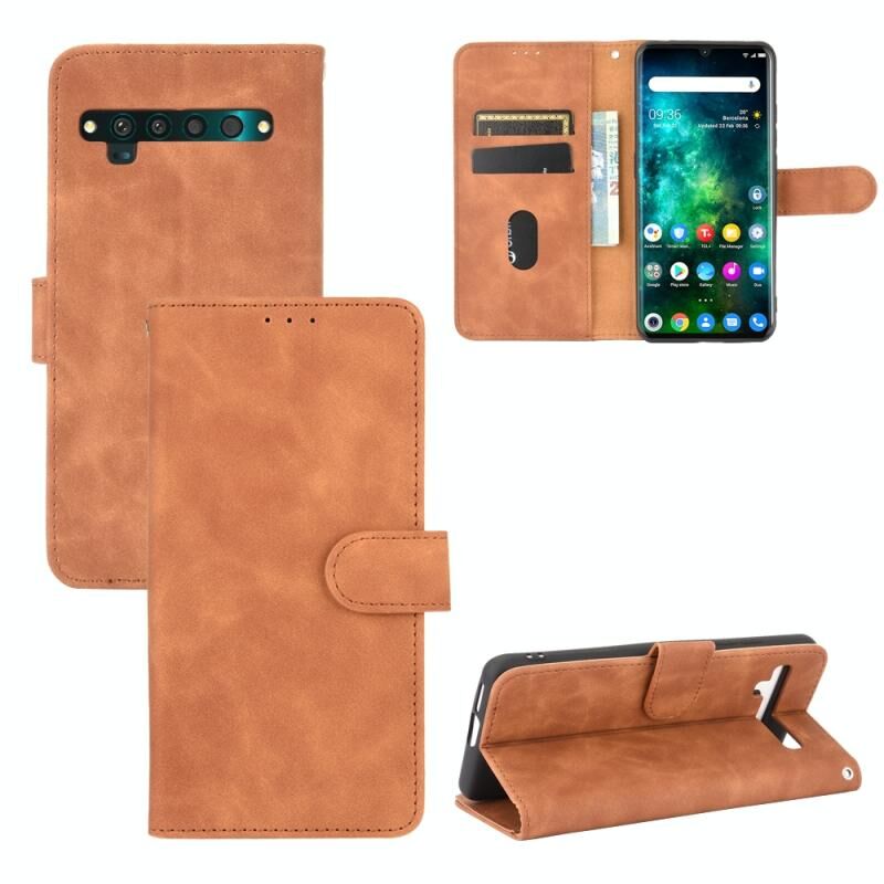 Για το TCL 10 Pro Solid Color Skin Feel μαγνητική πόρπη οριζόντια Flip μοσχάρι υφή PU δέρμα υπόθεση με κάτοχο & υποδοχές καρτών & πορτοφόλι (καφέ)