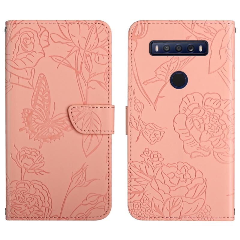 Θήκη τηλεφώνου από δέρμα με ανάγλυφο σχέδιο πεταλούδας και παιώνιας για TCL 10 SE (Κόκκινο)