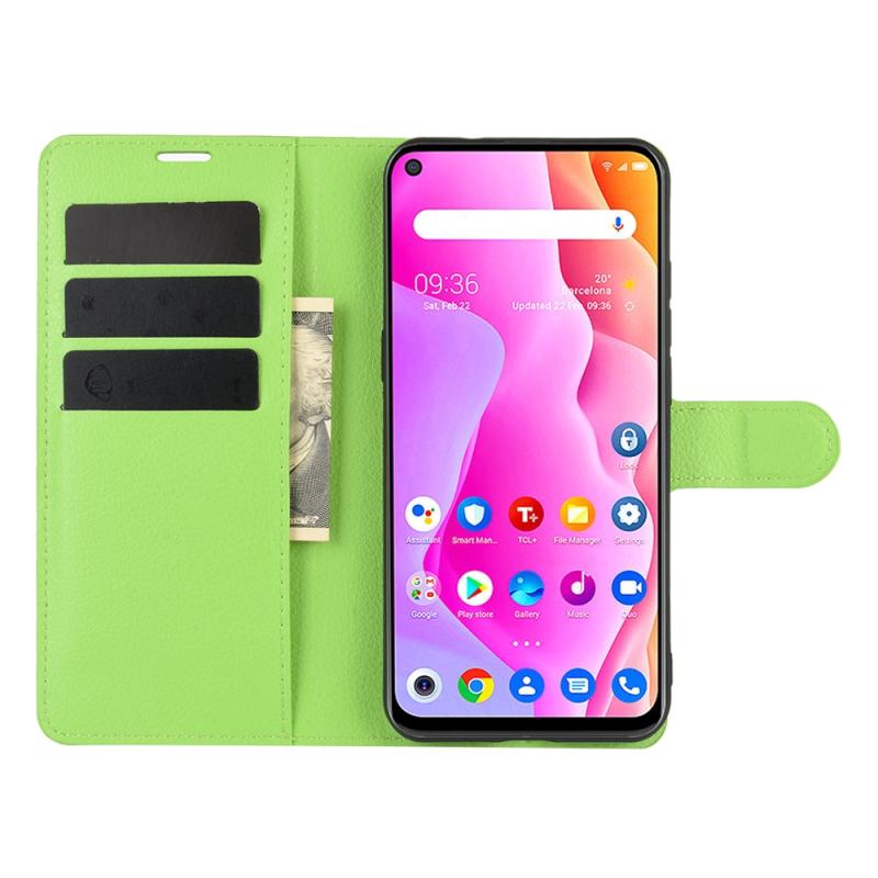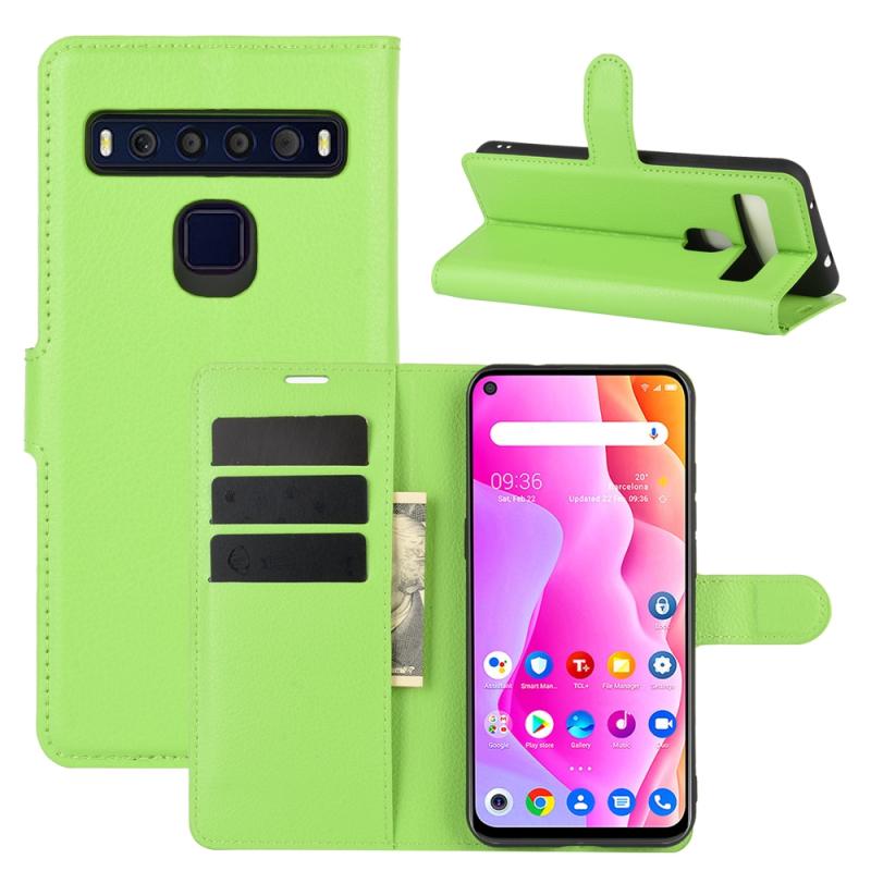 For TCL 10L Litchi Texture Horizontal Flip Protective Case with Holder & Card Slots & Wallet(Green)