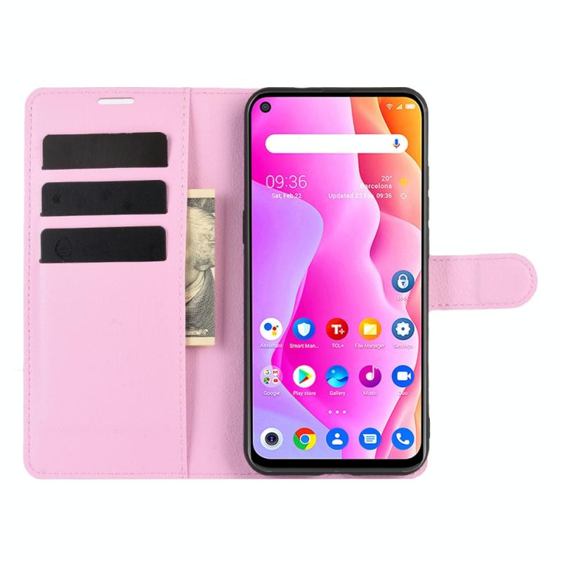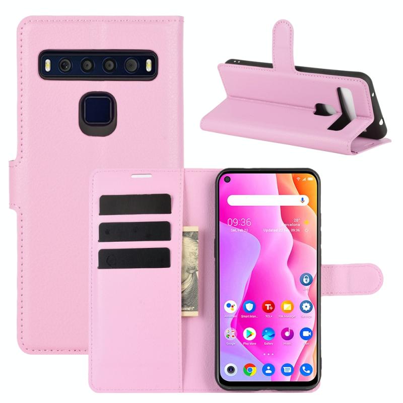 For TCL 10L Litchi Texture Horizontal Flip Protective Case with Holder & Card Slots & Wallet(Pink)