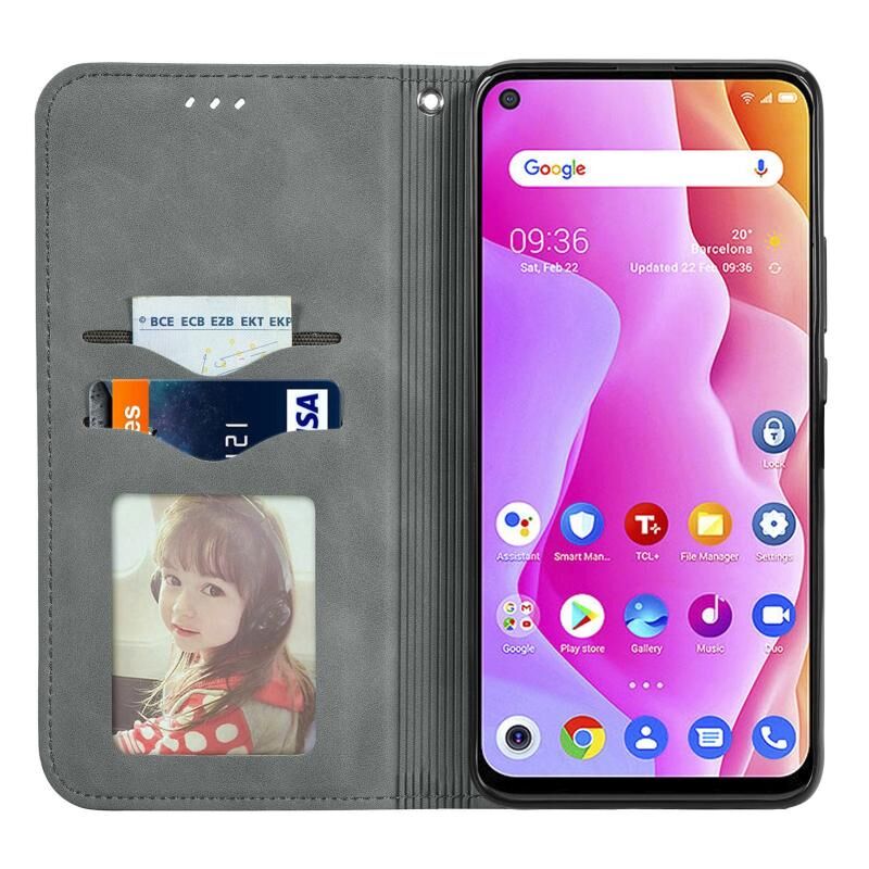 Για το TCL 10L Ρετρό δέρμα αίσθηση μαγνητική οριζόντια Flip δέρμα τηλέφωνο υπόθεση (γκρι)