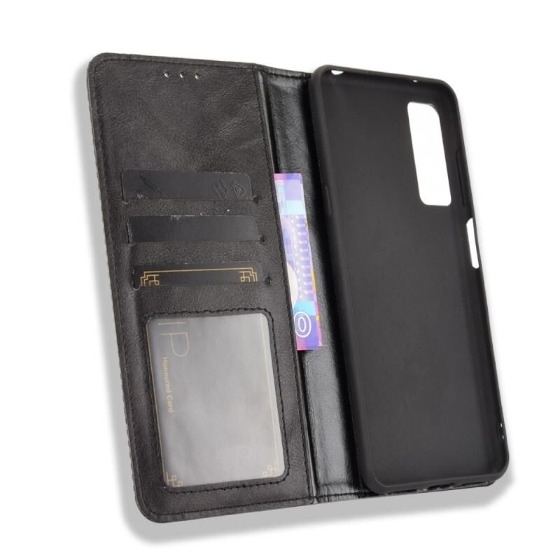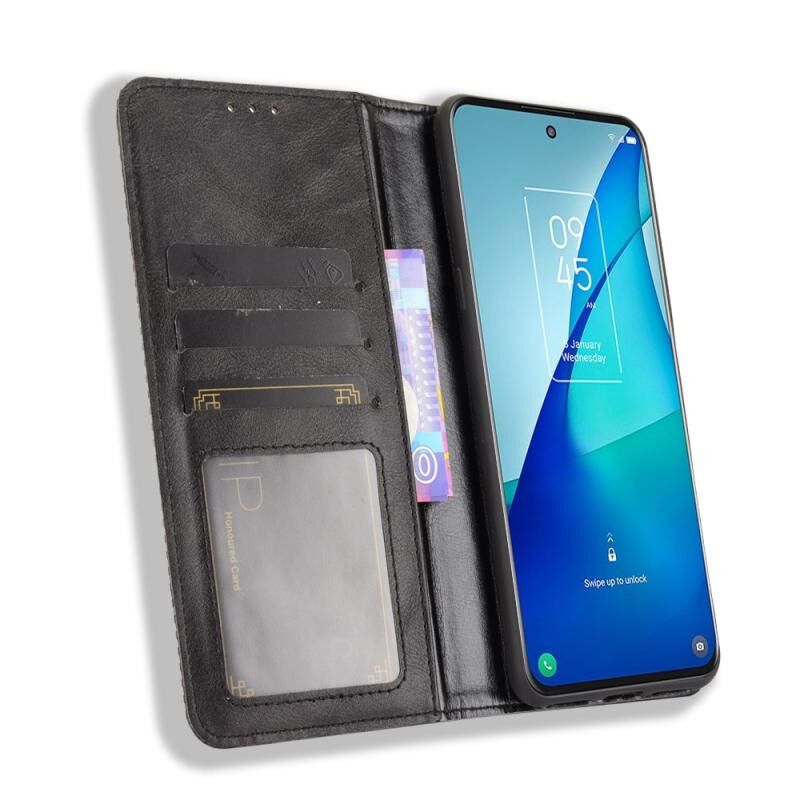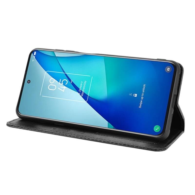 Για το TCL 20 5G / 20S / 20L / 20L+ Μαγνητική πόρπη Ρετρό τρελό άλογο υφή οριζόντια Flip δερμάτινη θήκη με κάτοχο & υποδοχές καρτών & πλαίσιο φωτογραφιών (μαύρο)