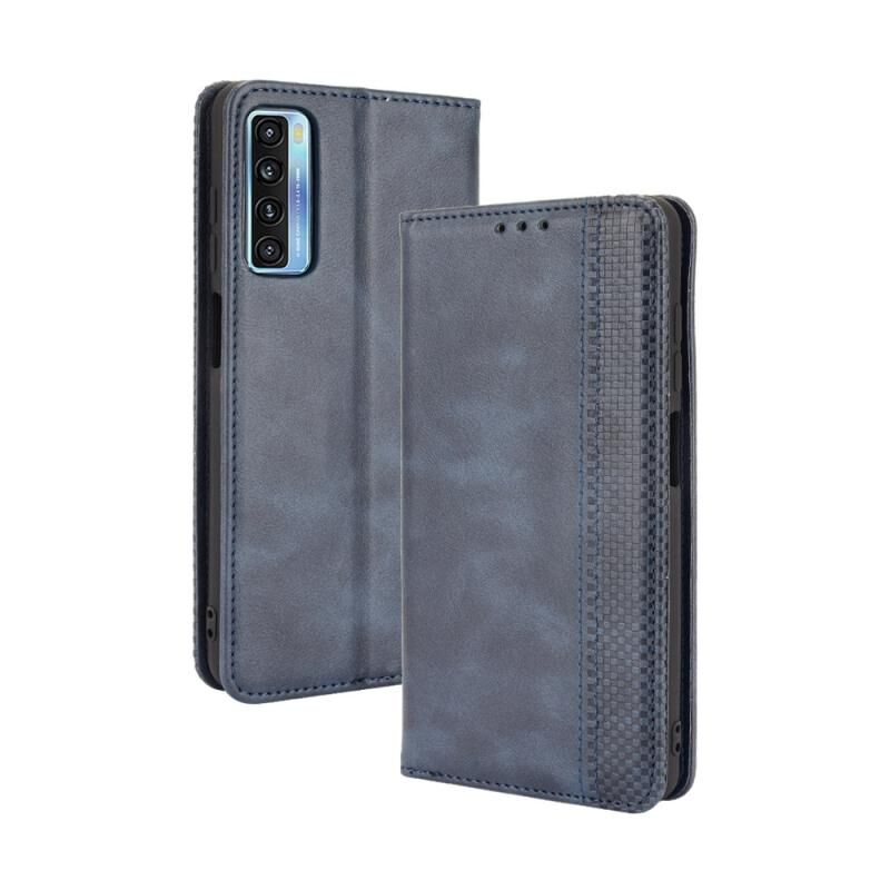 Για το TCL 20 5G / 20S / 20L / 20L+ Μαγνητική πόρπη Ρετρό τρελό άλογο υφή οριζόντια Flip δερμάτινη θήκη με κάτοχο & υποδοχές καρτών & πλαίσιο φωτογραφιών (μπλε)