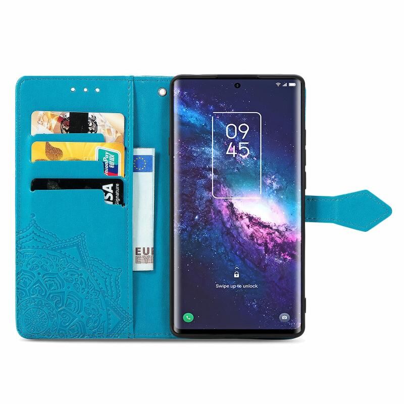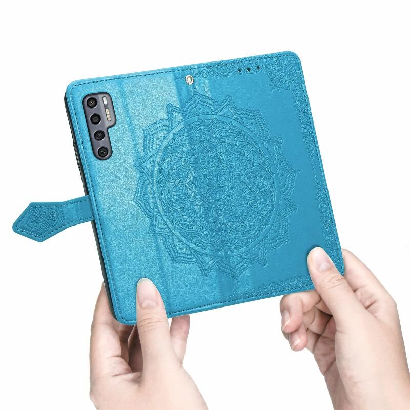Για TCL 20 Pro 5G Mandala λουλούδι ανάγλυφο οριζόντια Flip δερμάτινη θήκη με βραχίονα / υποδοχή κάρτας / πορτοφόλι / κορδόνι (μπλε)
