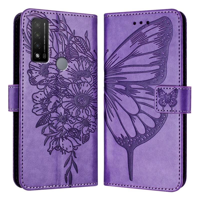 Θήκη τηλεφώνου από δέρμα με ανάγλυφο σχέδιο πεταλούδας για TCL 20 R 5G (Μαύρο)
