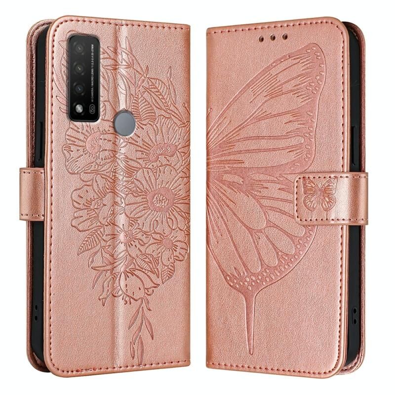Θήκη τηλεφώνου από δέρμα με ανάγλυφο σχέδιο πεταλούδας για TCL 20 R 5G (Μαύρο)