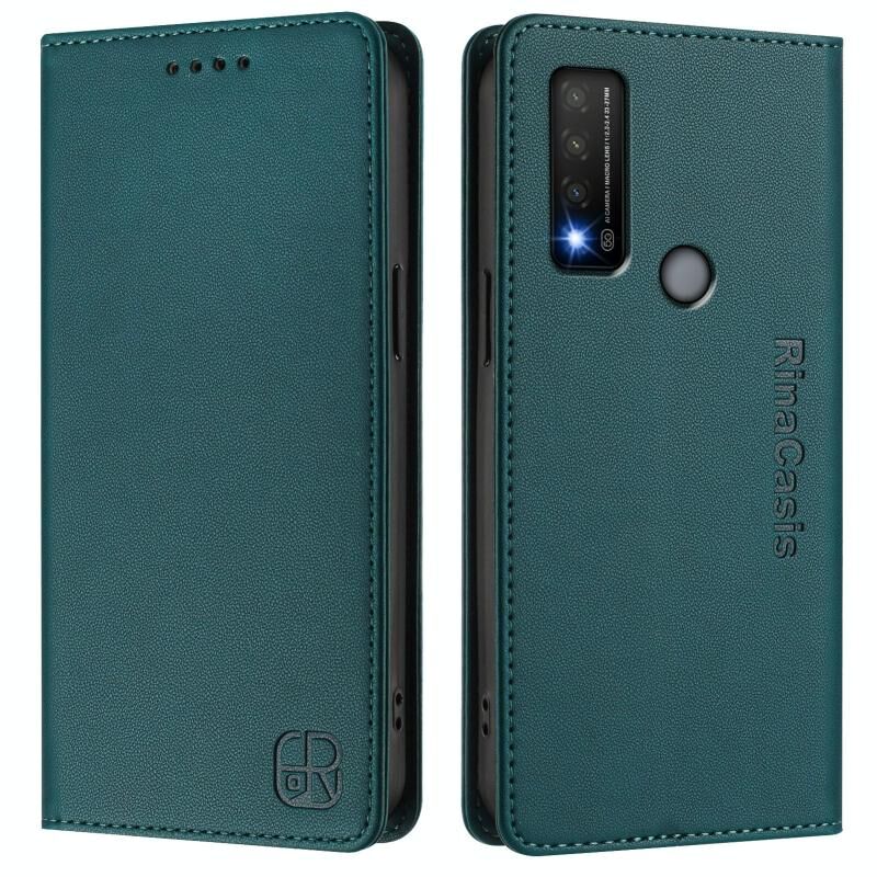 Θήκη τηλεφώνου δερμάτινη με μαγνητική απορρόφηση και διπλή πτυχή για TCL 20 R 5G RC01 (Μέντας Πράσινο)