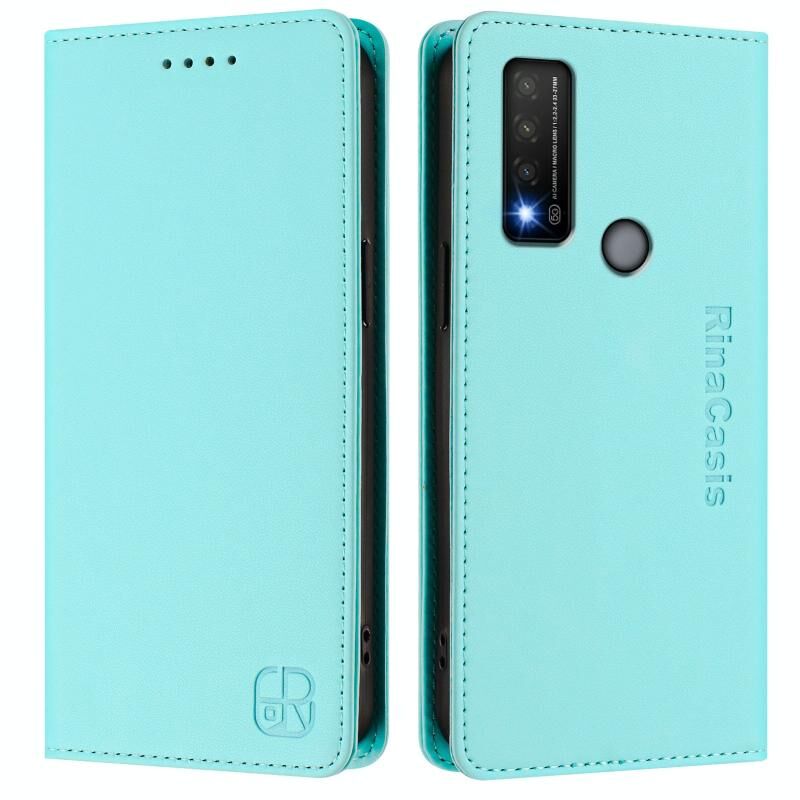 Θήκη τηλεφώνου δερμάτινη με μαγνητική απορρόφηση και διπλή πτυχή για TCL 20 R 5G RC01 (Μέντας Πράσινο)
