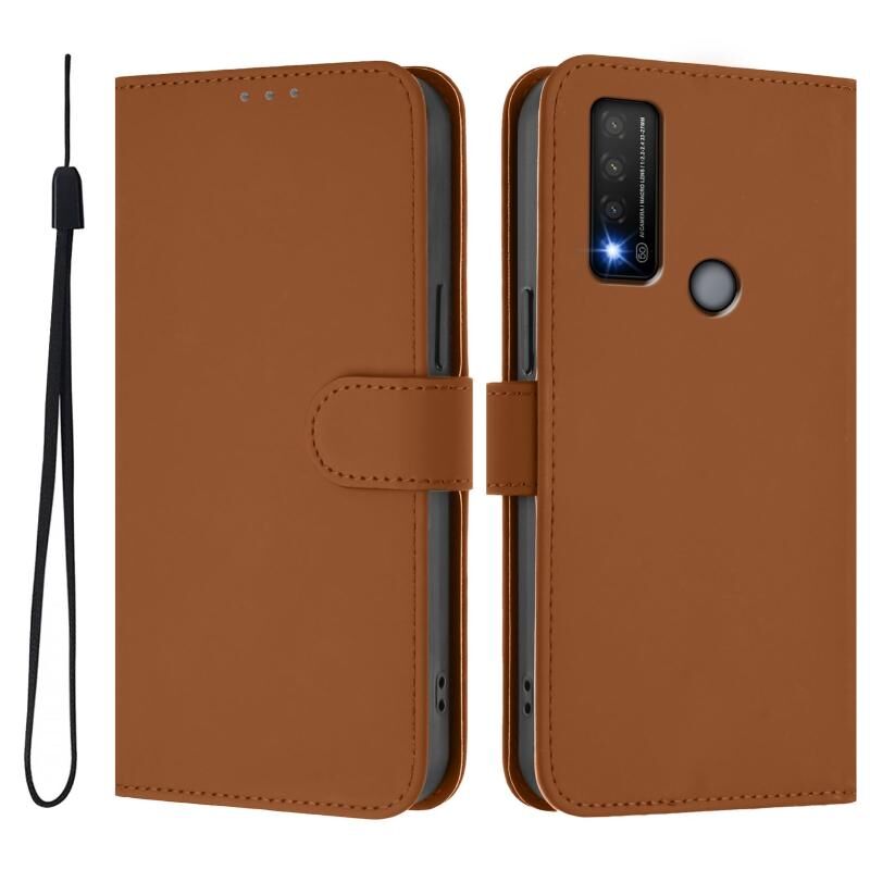 Για TCL 20 R 5G δέρμα αίσθηση Solid Color δέρμα τηλέφωνο υπόθεση με κορδόνι (καφέ)