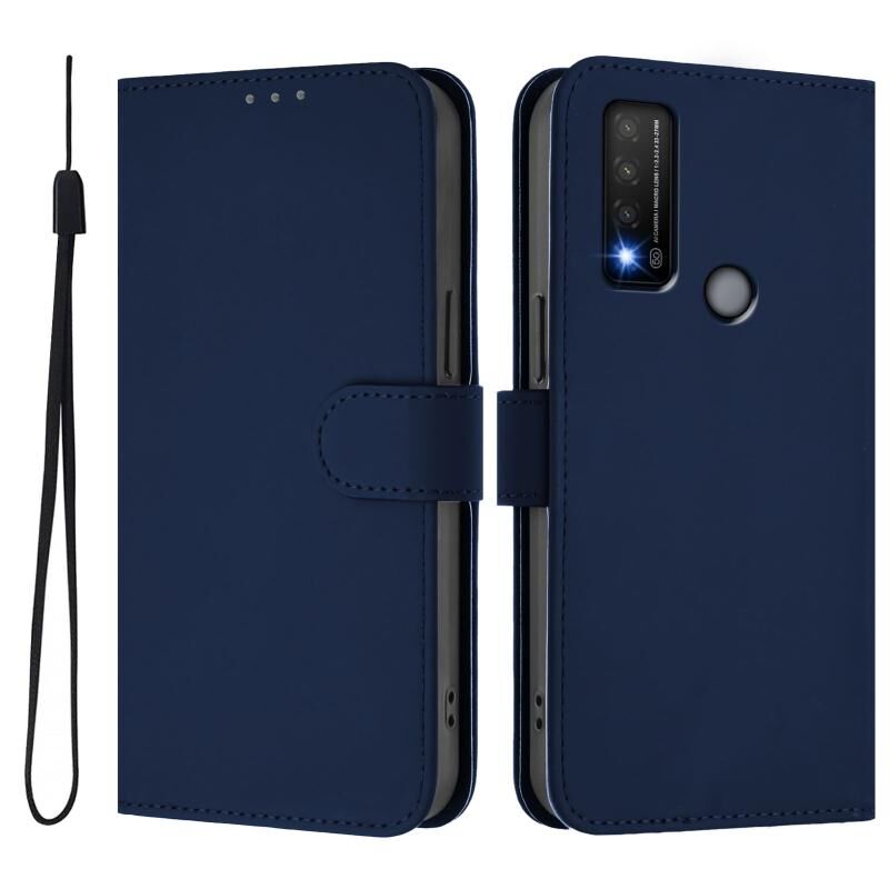 Για το TCL 20 R 5G δέρμα αισθάνονται στερεό χρώμα δερμάτινη θήκη τηλεφώνου με κορδόνι (Navy Blue)