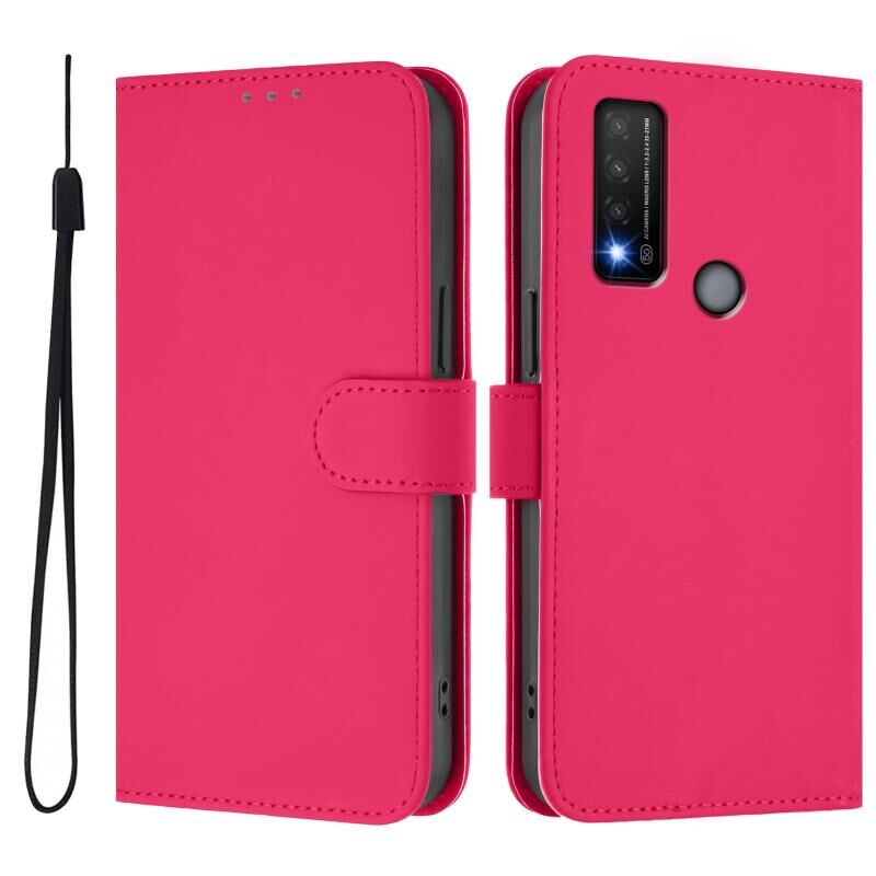Για το TCL 20 R 5G δέρμα αισθάνονται στερεό χρώμα δερμάτινη θήκη τηλεφώνου με κορδόνι (Rose Red)