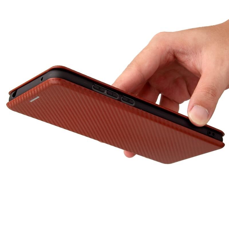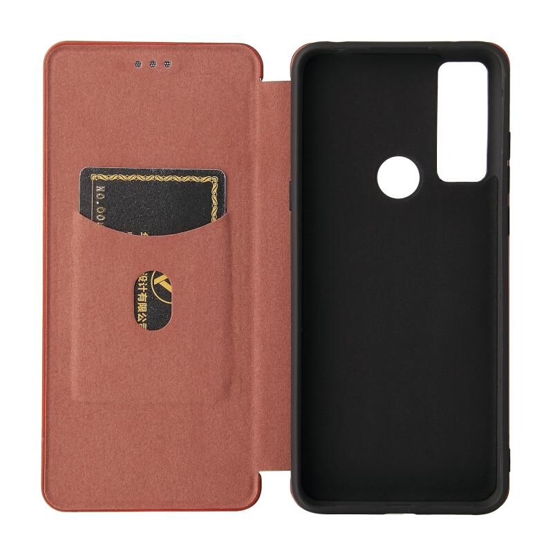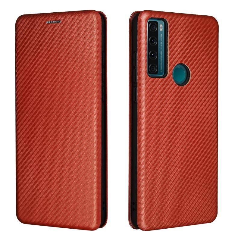 Για TCL 20 SE Carbon Fiber υφή οριζόντια Flip TPU + PC + PU δέρμα υπόθεση με υποδοχή κάρτας (καφέ)