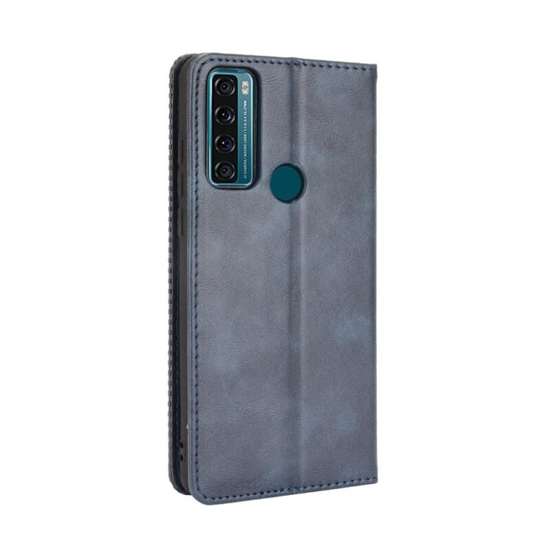 Για TCL 20 SE Μαγνητική πόρπη Ρετρό τρελό άλογο υφή οριζόντια Flip δερμάτινη θήκη με κάτοχο & υποδοχές για κάρτες & πλαίσιο φωτογραφιών (μπλε)