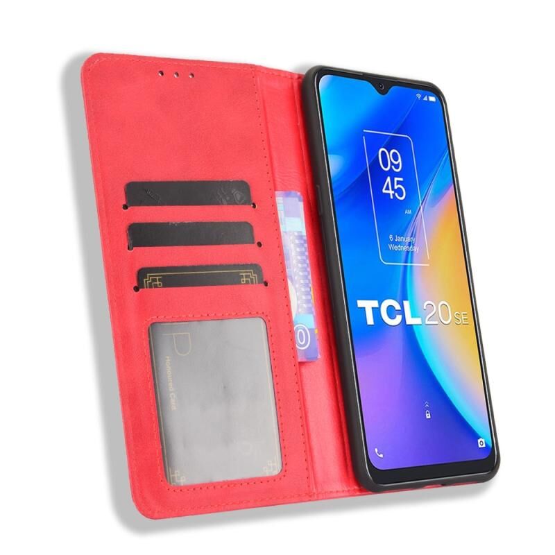Για TCL 20 SE Μαγνητική πόρπη Ρετρό τρελό άλογο υφή οριζόντια Flip δερμάτινη θήκη με κάτοχο & υποδοχές για κάρτες & πλαίσιο φωτογραφιών (κόκκινο)