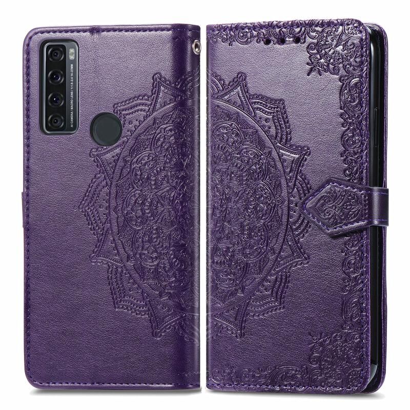 Για TCL 20 SE Mandala λουλούδι ανάγλυφο οριζόντια Flip δερμάτινη θήκη με βραχίονα / υποδοχή για κάρτες / πορτοφόλι / κορδόνι (Μωβ)