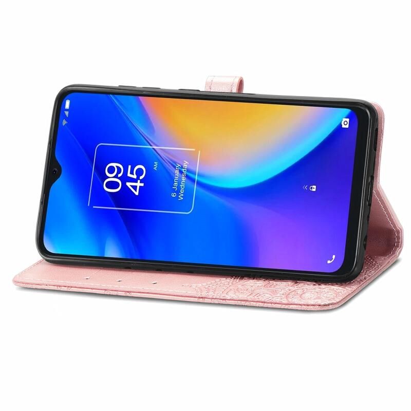 Για TCL 20 SE Mandala λουλούδι ανάγλυφο οριζόντια Flip δερμάτινη θήκη με βραχίονα / υποδοχή για κάρτες / πορτοφόλι / κορδόνι (Rose Gold)