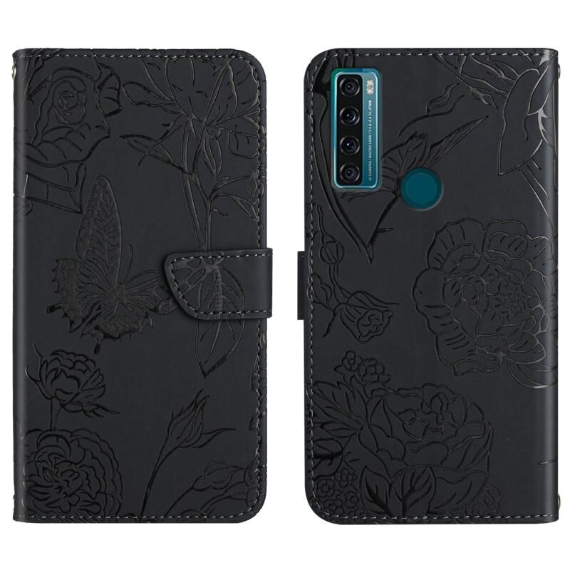 Θήκη τηλεφώνου από δέρμα με ανάγλυφο σχέδιο πεταλούδας και παιώνιας για TCL 20 SE (Κόκκινο)