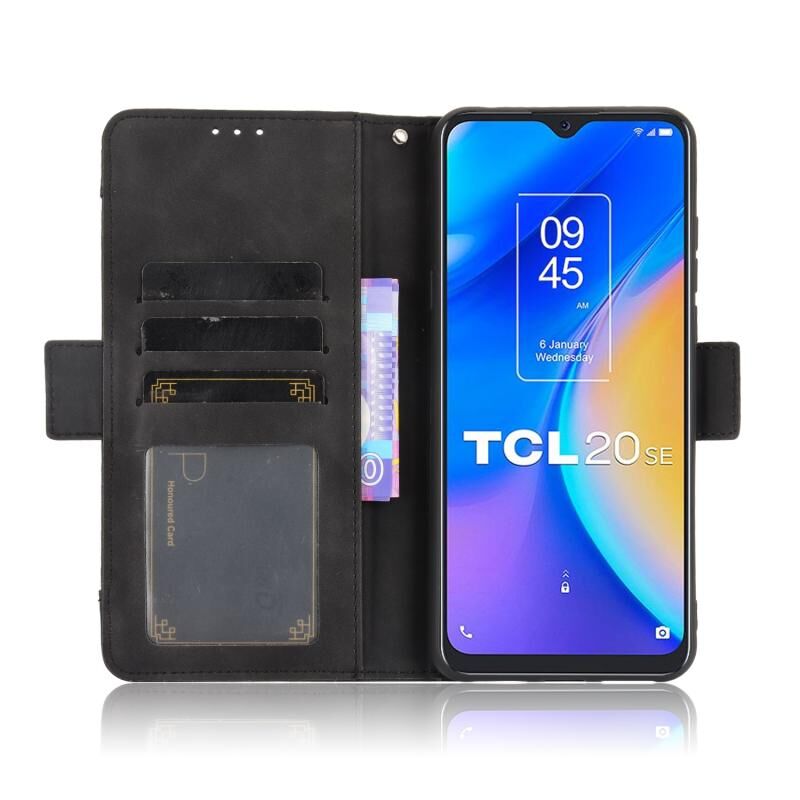 Για TCL 20 SE δέρμα αίσθηση μοσχάρι μοτίβο οριζόντια Flip δερμάτινη θήκη με υποδοχή & υποδοχές καρτών & πλαίσιο φωτογραφιών (μαύρο)