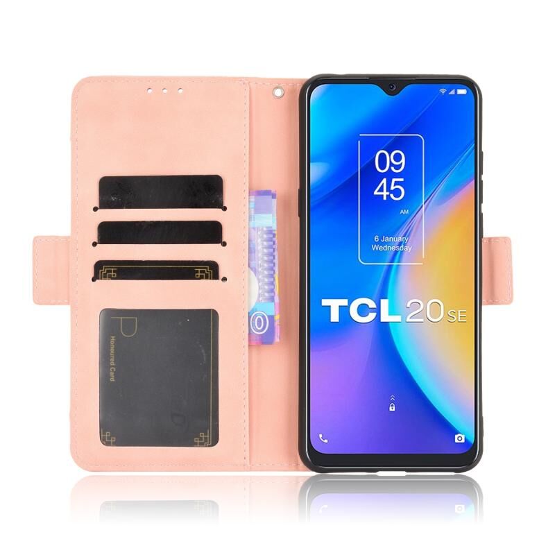 Για TCL 20 SE δέρμα αίσθηση μοσχάρι μοτίβο οριζόντια Flip δερμάτινη θήκη με κάτοχο & υποδοχές καρτών & πλαίσιο φωτογραφιών (ροζ)