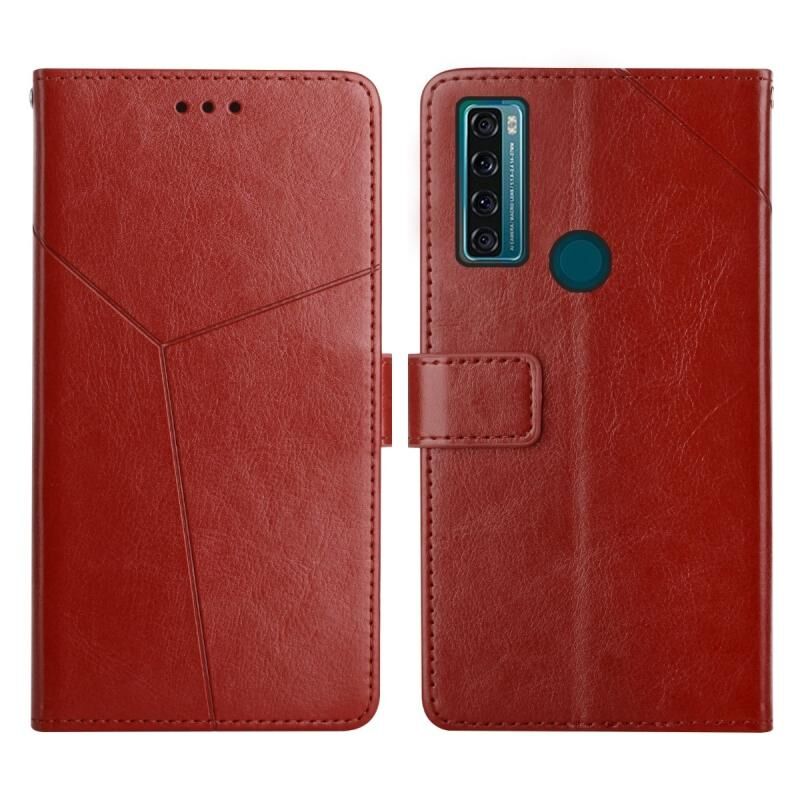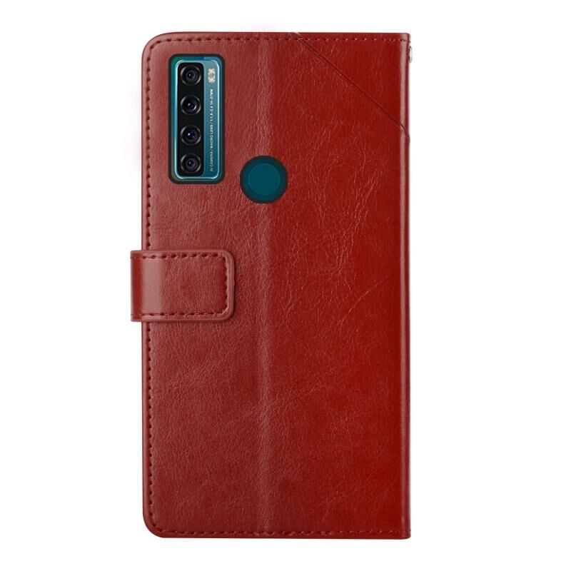 Για TCL 20 SE Y ραφή οριζόντια Flip δερμάτινη θήκη τηλεφώνου (καφέ)