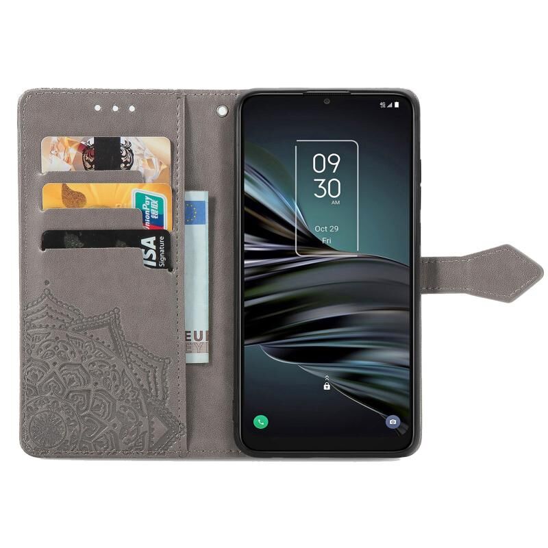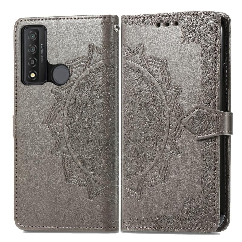 Για TCL 20 XE Mandala λουλούδι ανάγλυφο οριζόντια Flip δερμάτινη θήκη τηλεφώνου (γκρι)