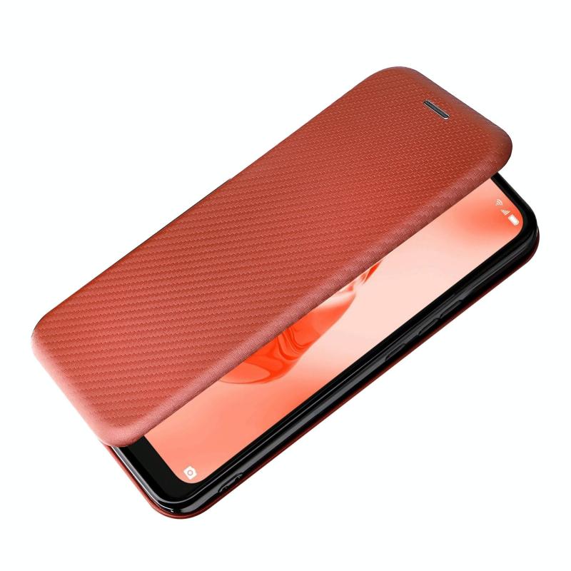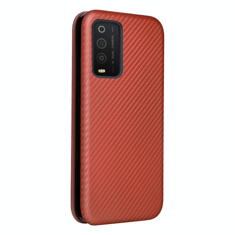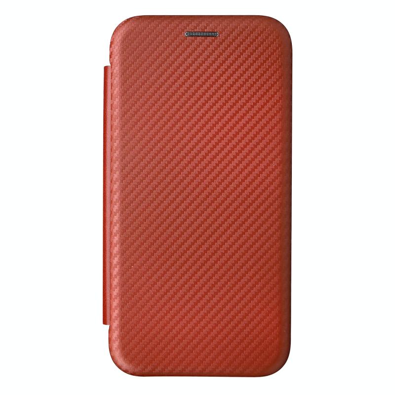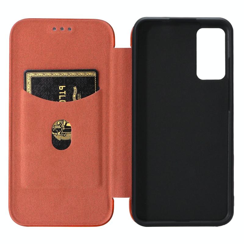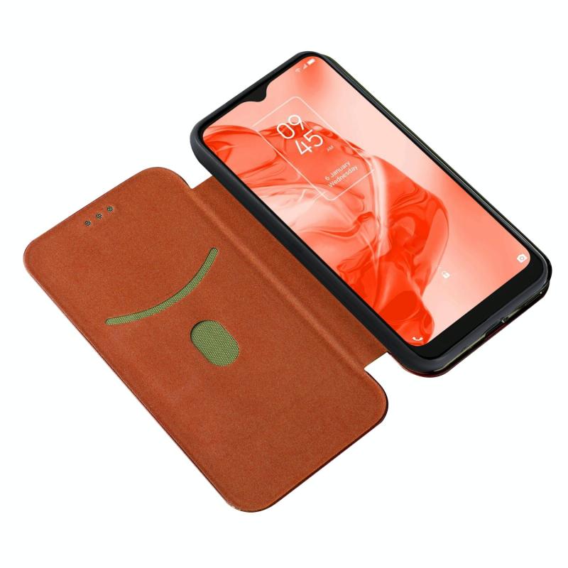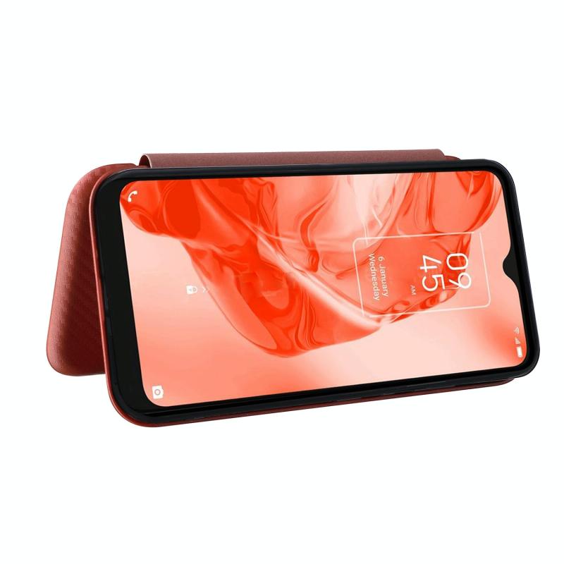 Θήκη τηλεφώνου δερμάτινη οριζόντιας αναδίπλωσης για TCL 205 με υφή ανθρακονημάτων (Καφέ)