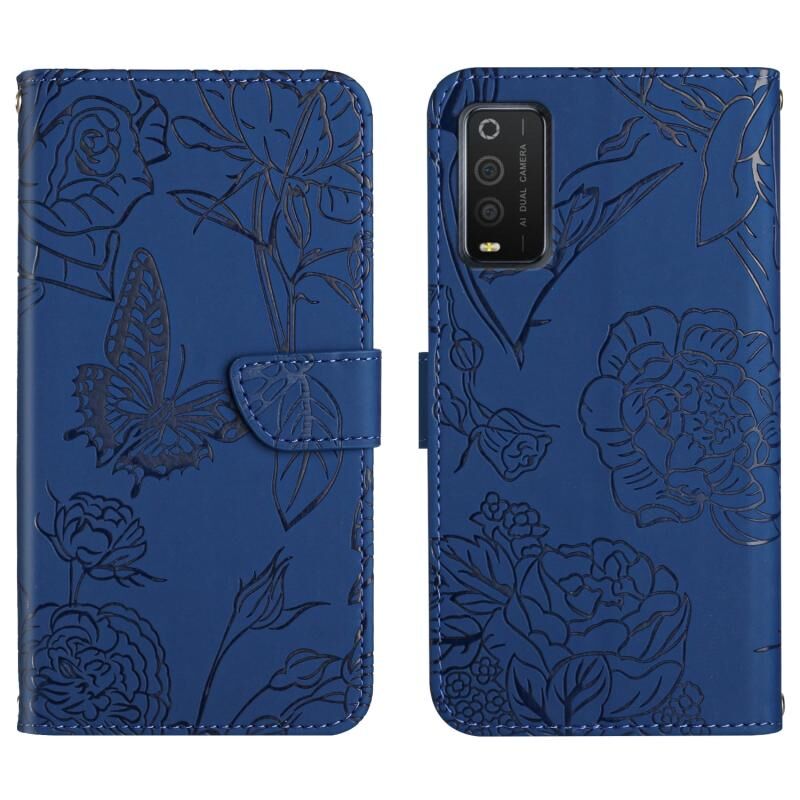 Θήκη τηλεφώνου TCL 205 με ανάγλυφο δέρμα, σχέδιο πεταλούδας και παιώνιας (Κόκκινο)