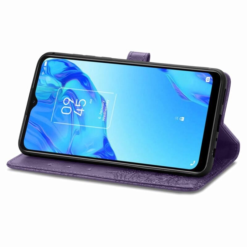 Για TCL 20B Mandala λουλούδι ανάγλυφο οριζόντια Flip δερμάτινη θήκη τηλεφώνου (Μωβ)