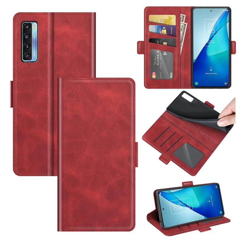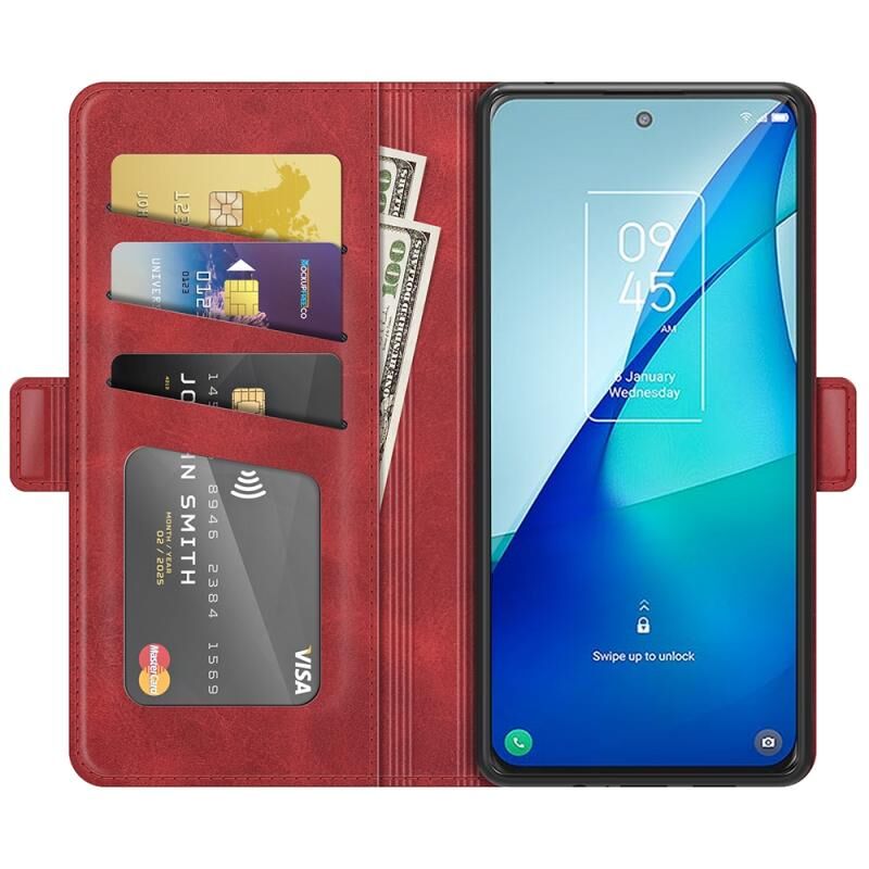 Για TCL 20S / 20 5G / 20L διπλής όψης μαγνητική πόρπη οριζόντια Flip δερμάτινη θήκη με θήκη & υποδοχές καρτών & πορτοφόλι (κόκκινο)