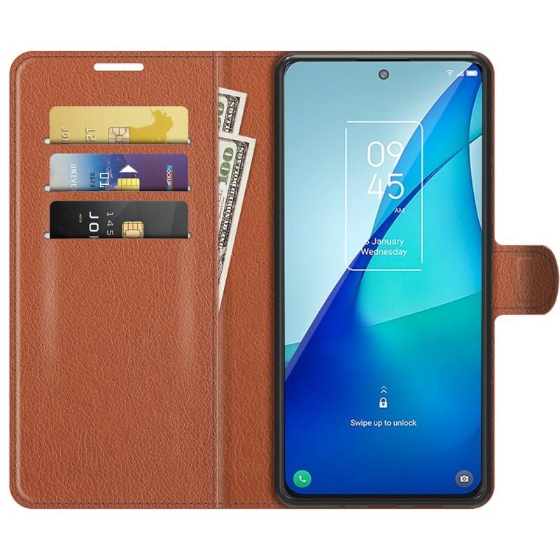 Για TCL 20S / 20 5G / 20L Litchi Υφή οριζόντια Flip προστατευτική θήκη με κάτοχο & υποδοχές για κάρτες & πορτοφόλι (καφέ)