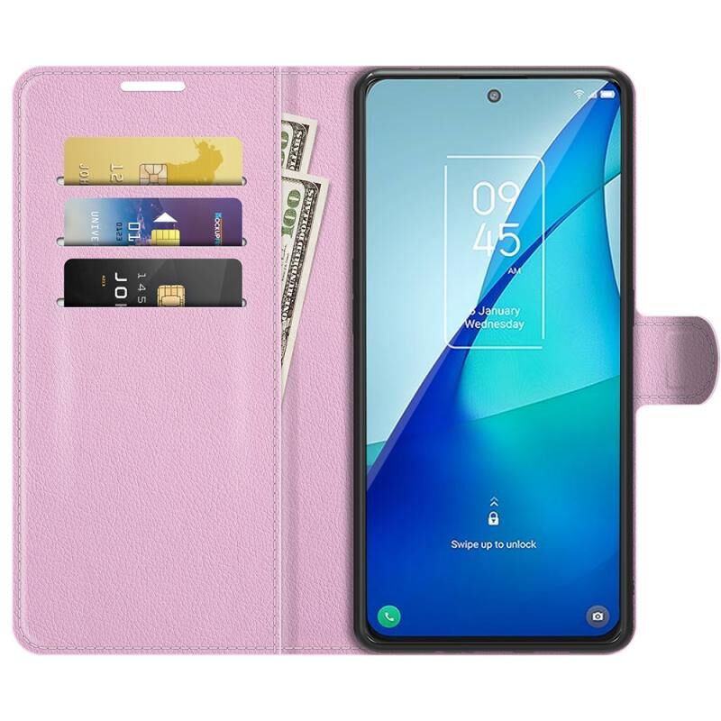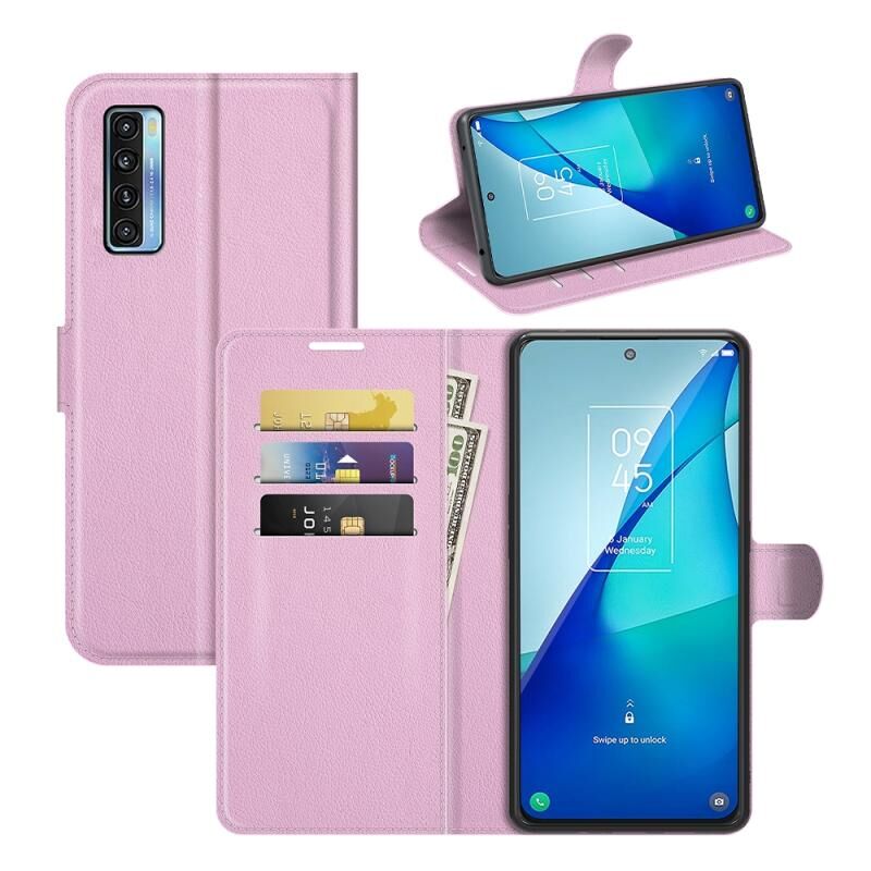 Για TCL 20S / 20 5G / 20L Litchi Υφή οριζόντια Flip προστατευτική θήκη με θήκη & υποδοχές καρτών & πορτοφόλι (ροζ)
