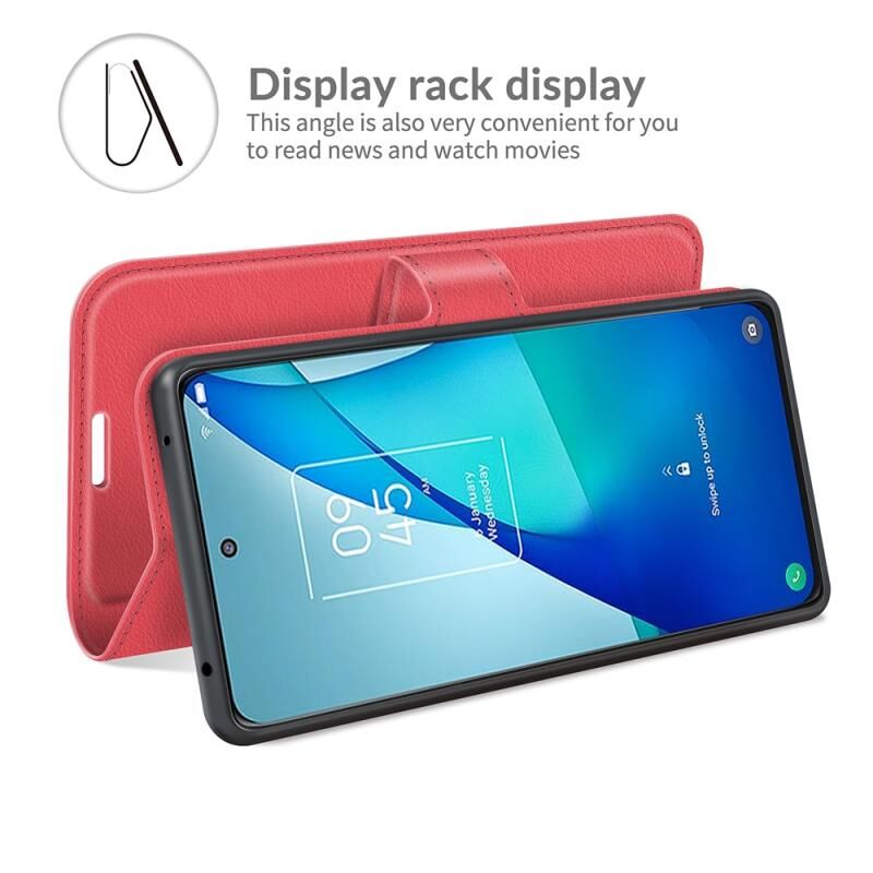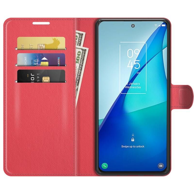 Για TCL 20S / 20 5G / 20L Litchi Υφή οριζόντια Flip προστατευτική θήκη με θήκη & υποδοχές καρτών & πορτοφόλι (κόκκινο)