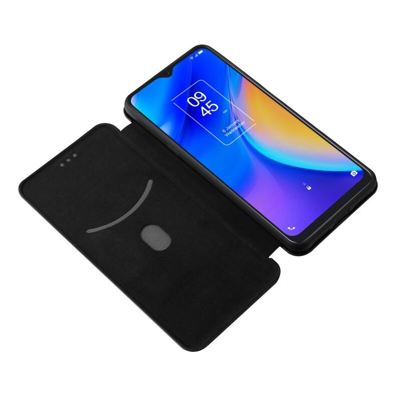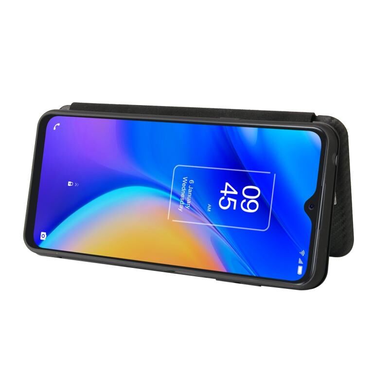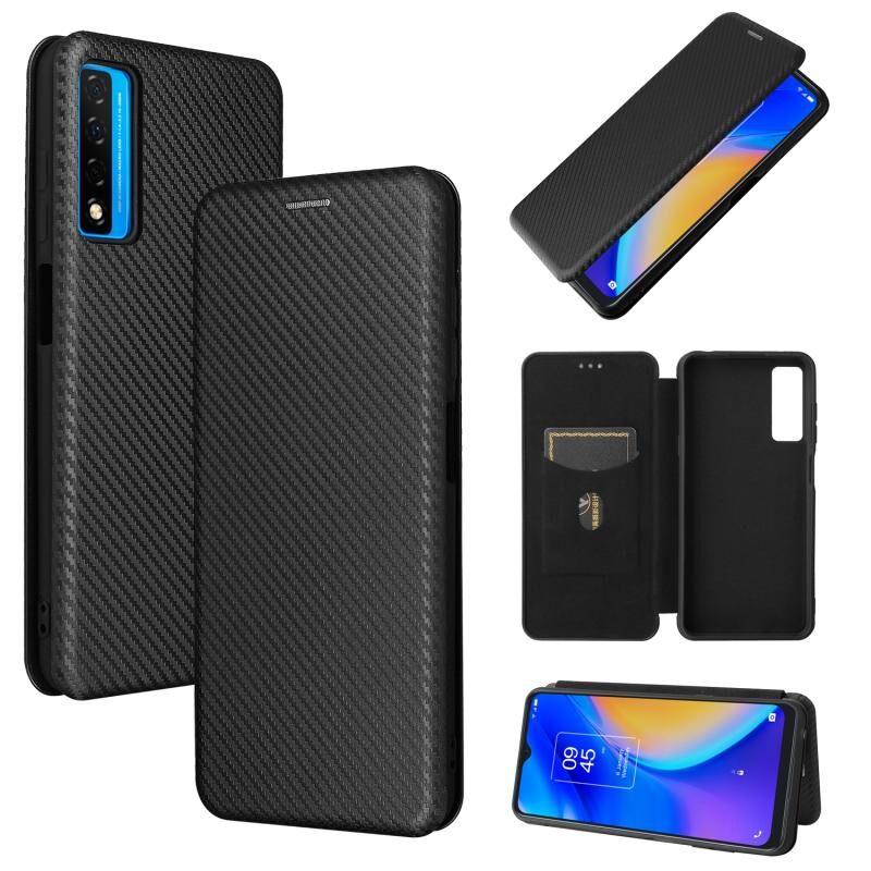 Για TCL 20S Carbon Fiber υφή οριζόντια Flip TPU + PC + PU δέρμα υπόθεση με υποδοχή κάρτας (μαύρο)