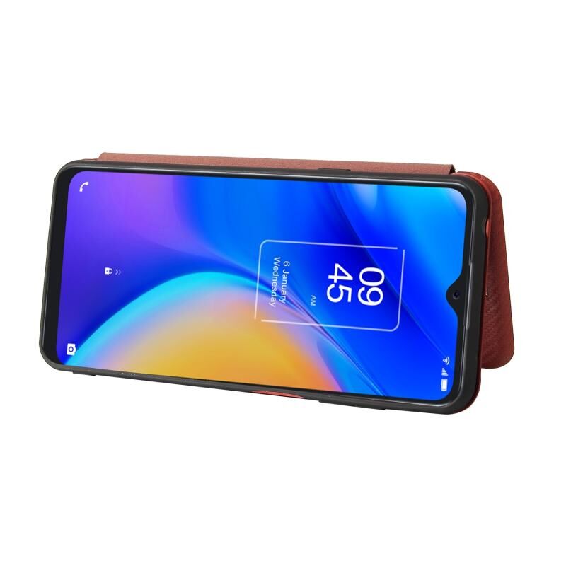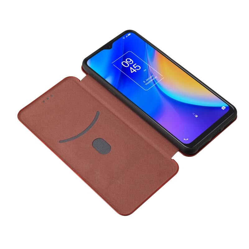 Για TCL 20S Carbon Fiber υφή οριζόντια Flip TPU + PC + PU δέρμα υπόθεση με υποδοχή κάρτας (καφέ)