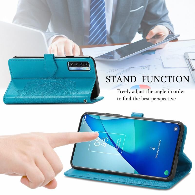 Για TCL 20S Mandala λουλούδι ανάγλυφο οριζόντια Flip δερμάτινη θήκη με βραχίονα / υποδοχή για κάρτες / πορτοφόλι / κορδόνι (μπλε)