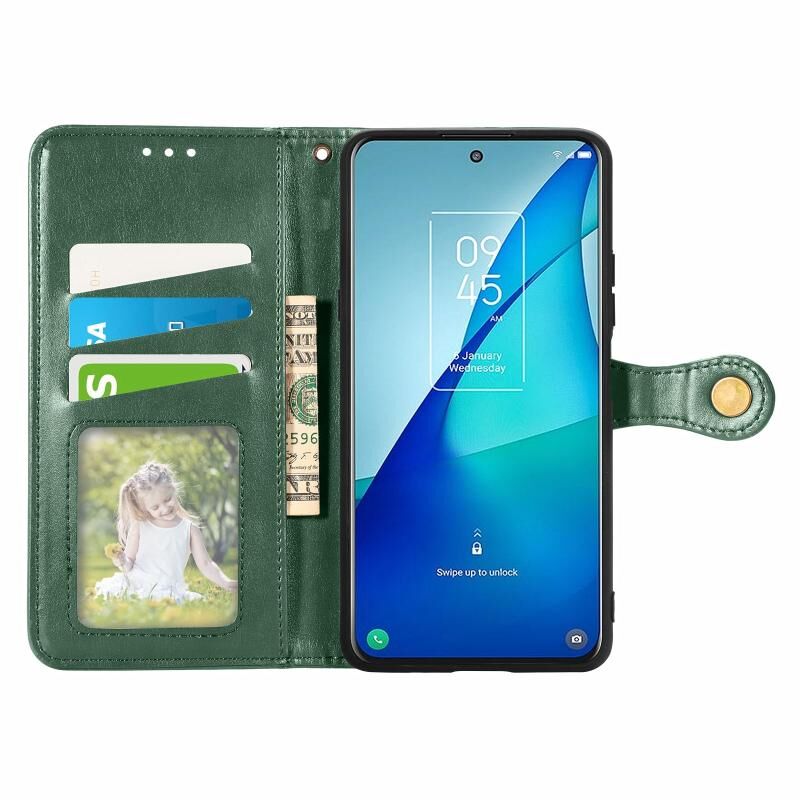 2. Λειτουργία: Vintage δέρμα στερεού χρώματος με χάλκινη πόρπη πόρπη είναι ευγενής και γενναιόδωρη: Με υποδοχή κάρτας, πορτοφόλι, πλαίσιο φωτογραφιών είναι εύκολο στη χρήση, η λειτουργία βραχίονα έχει σχεδιαστεί για εύκολη προβολή.