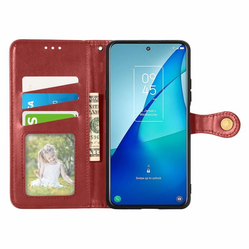Για TCL 20S Αμιγές χρώμα δερμάτινη θήκη τηλεφώνου πόρπη με κορδόνι & πλαίσιο φωτογραφιών & υποδοχή κάρτας & πορτοφόλι & λειτουργία Stand (κόκκινο)