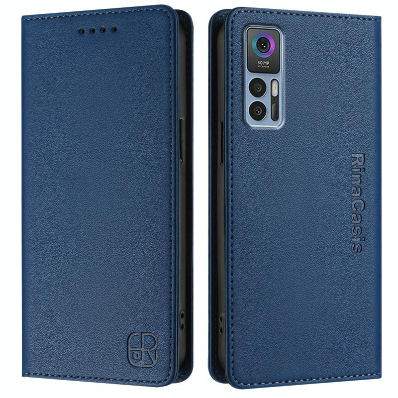 For TCL 30 4G / 30 5G / 30+ RC01 Dual-Folded Magnetic Suction RFID Leather Phone Case(Dark Blue)