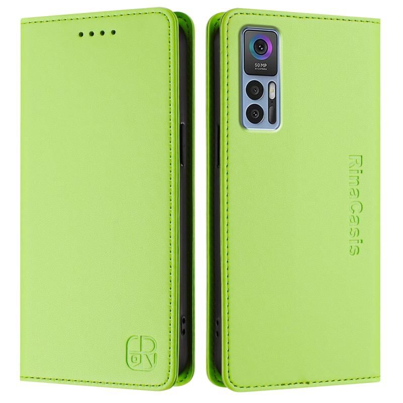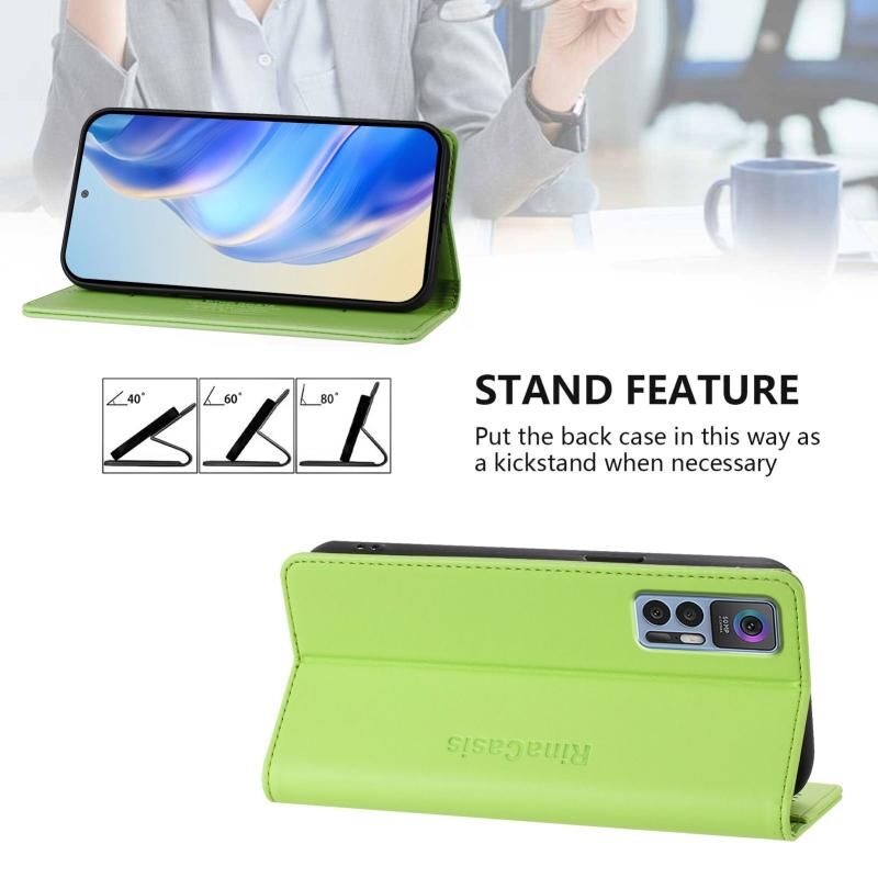Θήκη τηλεφώνου από δέρμα με μαγνητική απορρόφηση και διπλή πτυχή για TCL 30 4G / 30 5G / 30+ RC01 (Μέντας Πράσινο)